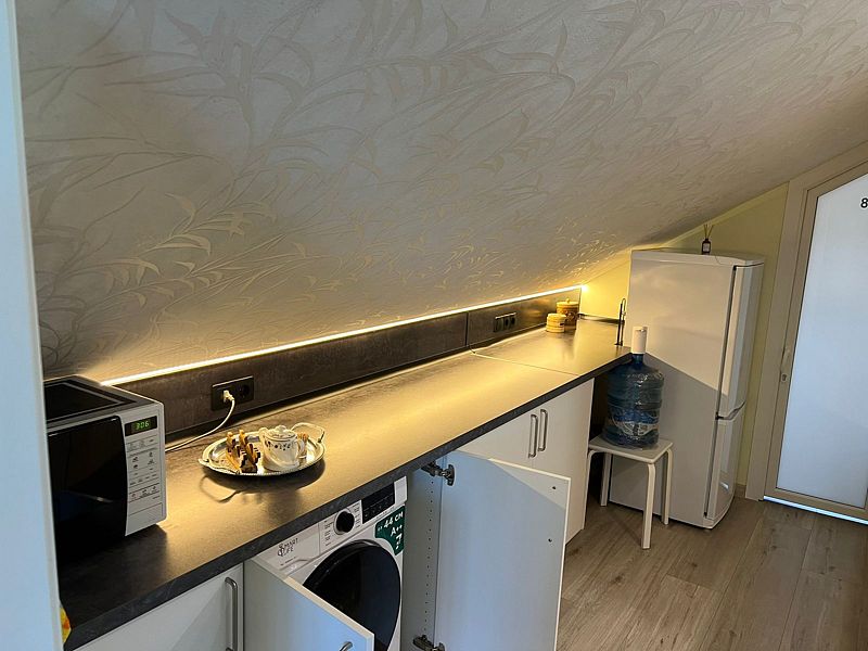 Небольшой одноместный номер на третьем этаже гостевого дома. Гости номера могут пользоваться общей гостиной, кухней и игровой зоной.