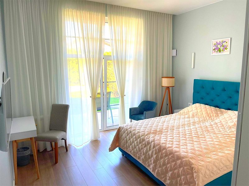 Вокруг гостевого дома раскинулся живописный сад, погружающий в мир зелени и спокойствия. На ухоженной территории уютно расположились терраса с мягкими креслами и тенистые скамейки, приглашая вас отдохнуть и насладиться свежим воздухом, создав идеальные условия для расслабляющего времяпрепровождения на природе.