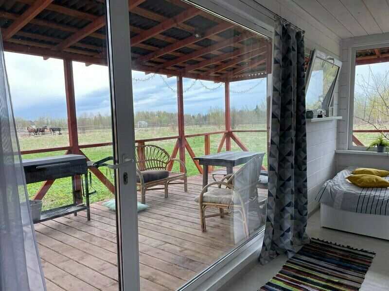 - компактные домики на границе леса, откуда открывается прекрасный вид на лошадей;