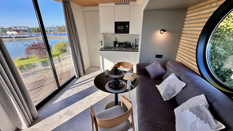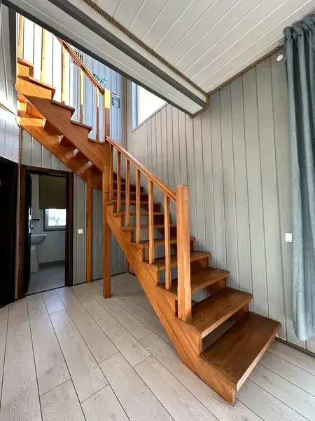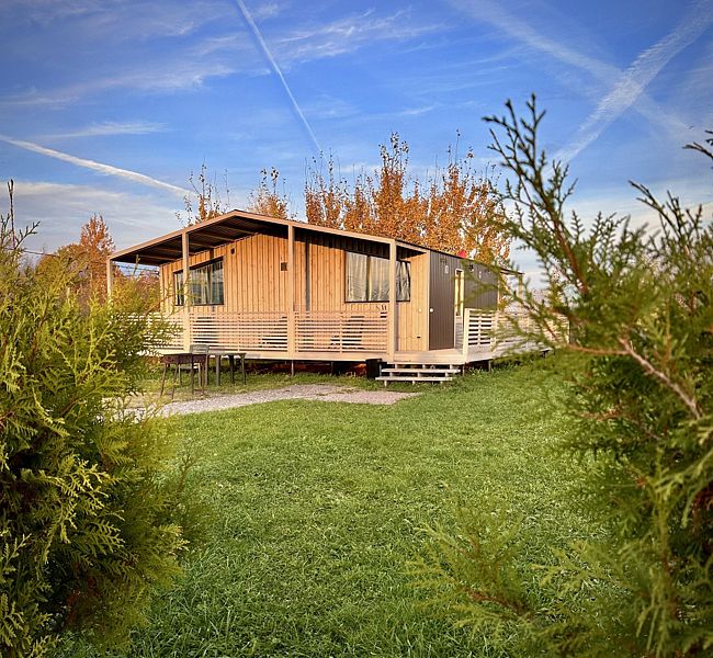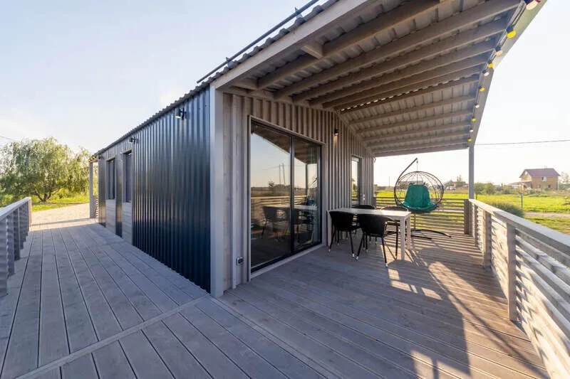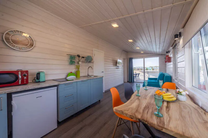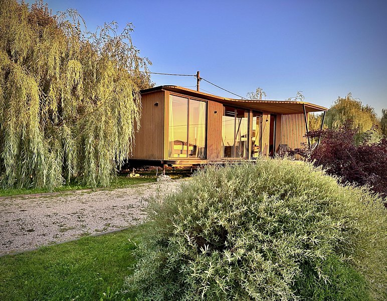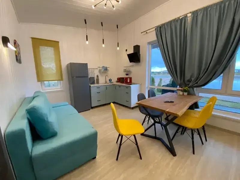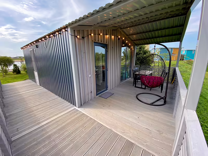 Уютный и современный дом с панорамным видом, большой террасой с подвесным креслом и красивым видом. Вместимостью до 3 человек. Находится в 5 метрах от берега.