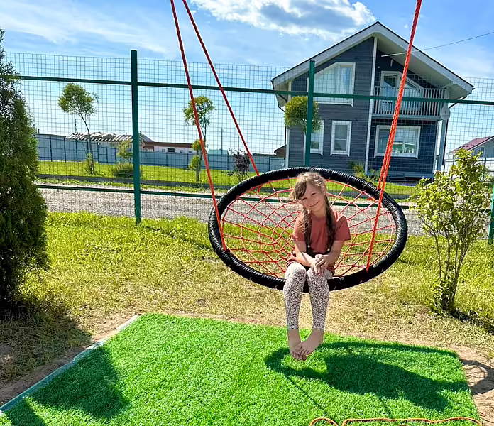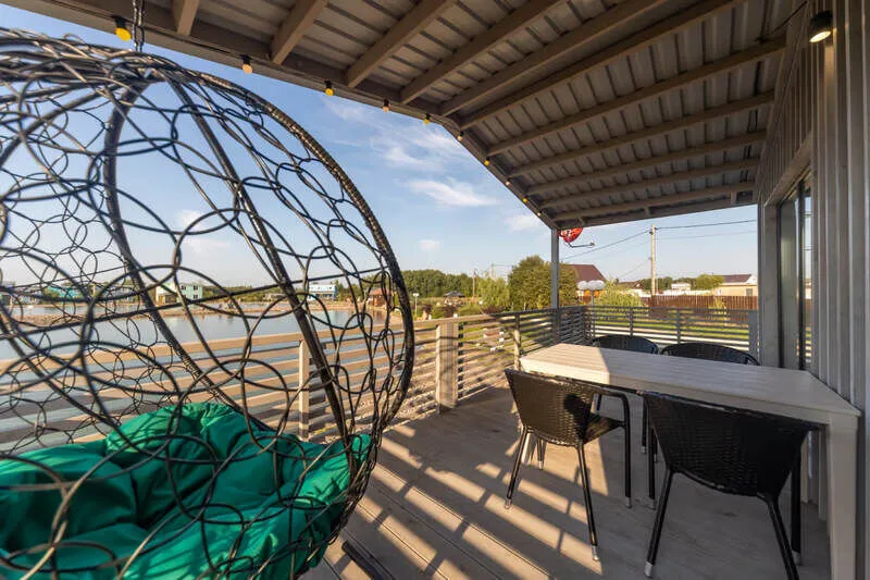 Большая крытая терраса с подвесным креслом. Мангальная зона, мангал, решетка и шампура предоставляется бесплатно. Возможно проживание с домашними питомцами.