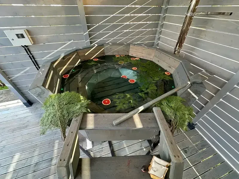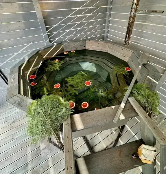 Испытайте на себе непередаваемые ощущения от купания в банном чане на открытом воздухе. 38–42 градуса температура воды в чане.