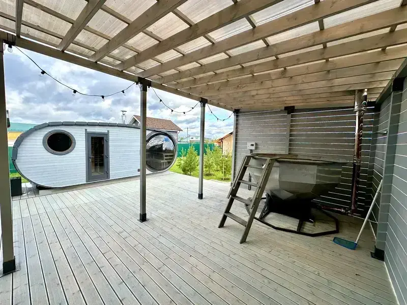 Читать полностьюНовая баня–бочка на дровах, готова принимать гостей. Своя зона отдыха. Большая парная вмещает 4–6 человек. Имеется уютная комната отдыха. Душ и туалет. Большая крытая терраса и мангальная зона. Рядом с баней находится банный чан с гидромассажем и подсветкой, при аренде чана и бани вместе скидка.