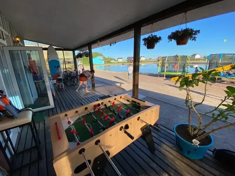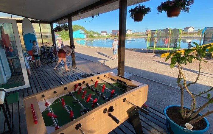 Что входит в эту стоимость: прогулки по территории, свой пляж, настольный теннис, детская площадка, батуты, все виды настольных игр , аэрохоккей и настольный футбол, баскетбольное кольцо, теплая детская комната.