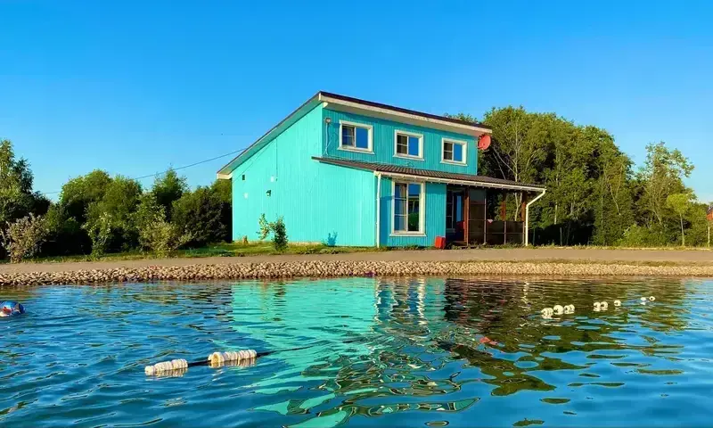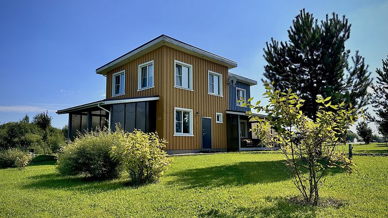 Уютный и современный дом с красивым видом на воду. Коттедж находится прямо на берегу, 5 метров до воды. Во всех помещениях теплые полы. Прекрасный вариант для проживания с детьми и семейных пар.