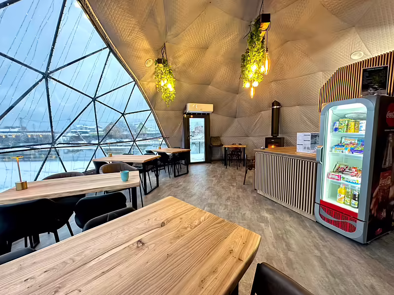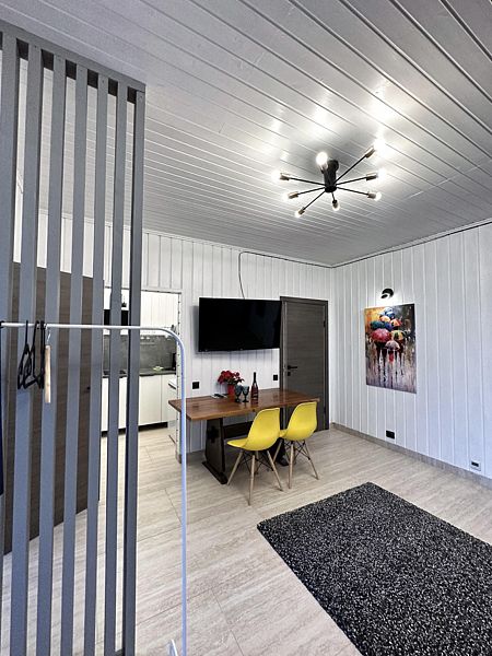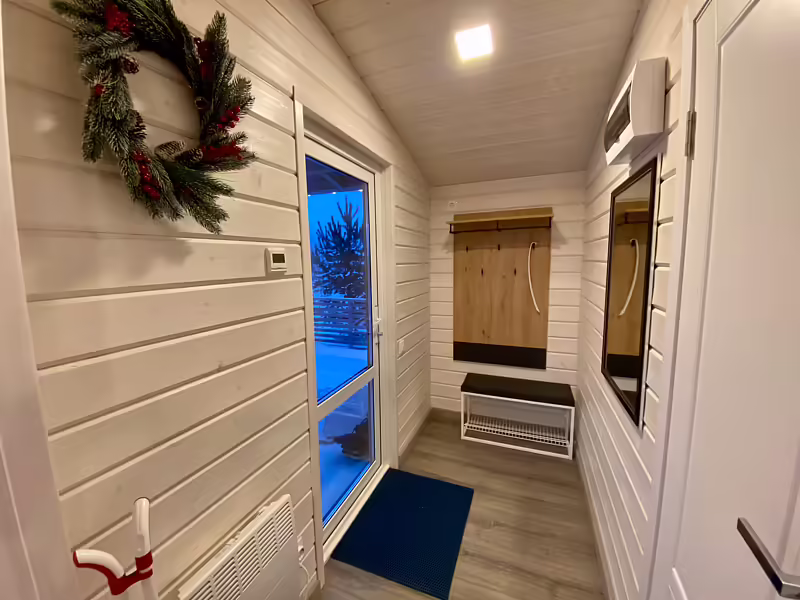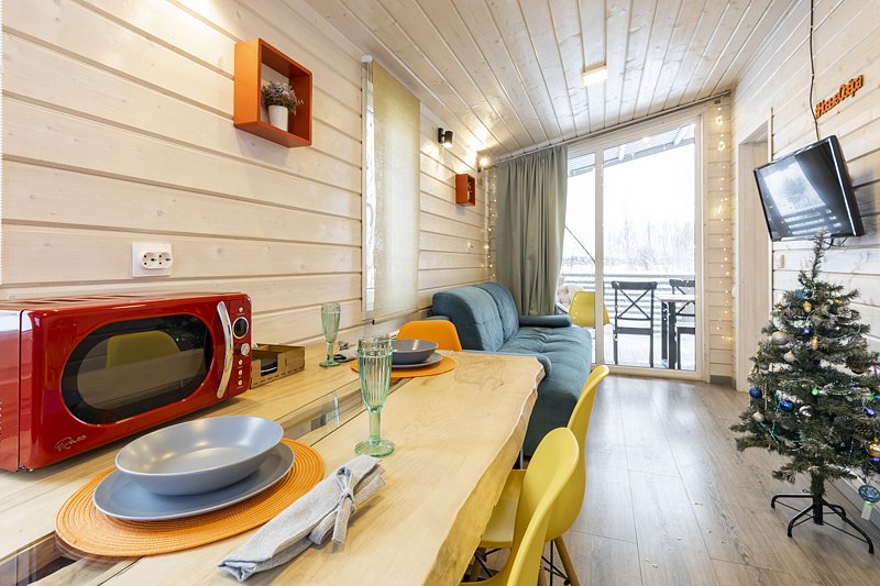 Во всем Лодже теплые полы и кондиционер. Мини кухонная зона, оборудована необходимой техникой: микроволновая печь, холодильник, чайник и посудой, смарт TV с Алисой.