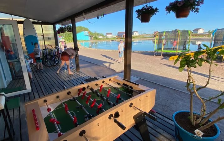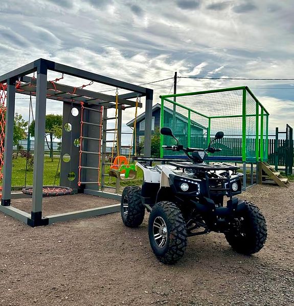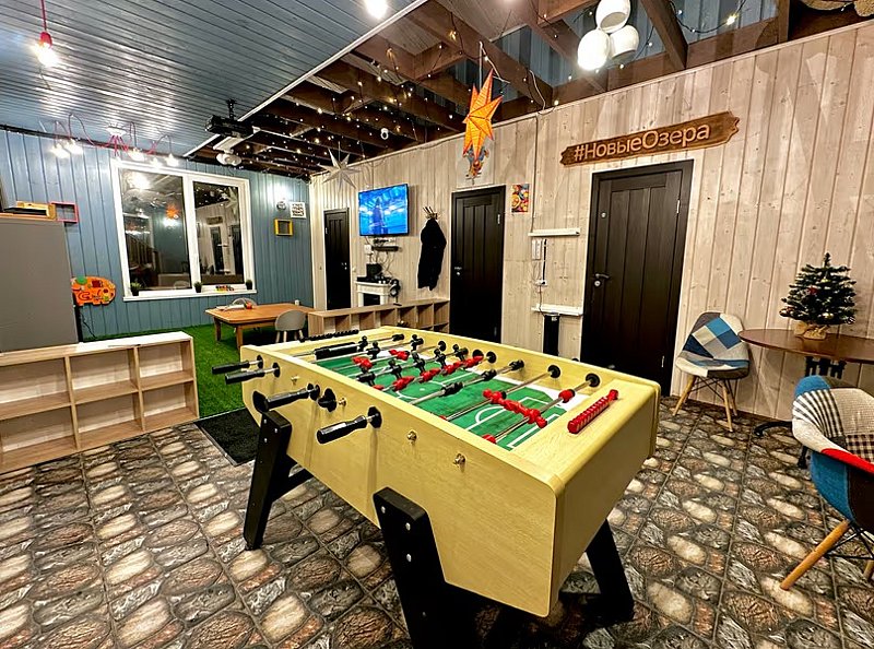 На территории комплекса максимум развлечений для взрослых и детей. Батуты, аэрохоккей, настольный футбол и теннис, пляж, прокат квадроциклов, караоке, настольные и виртуальные игры. Русская баня на дровах, термальный банный чан, горячая купель.