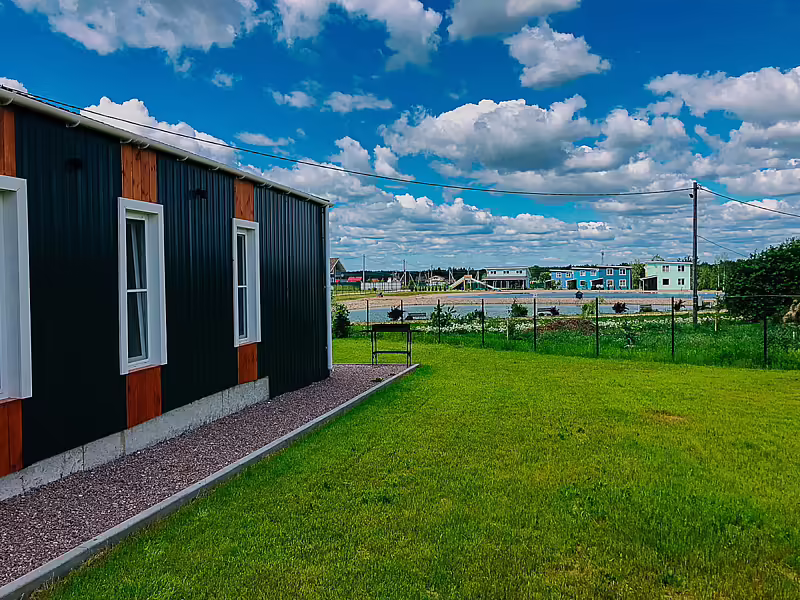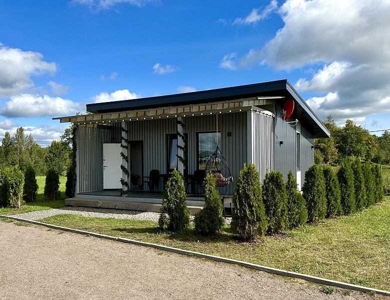 Коттедж общей площадью 25 м2 имеет просторную кухню-гостиную. Одна спальня с двуспальной кроватью. В гостиной расположен диван. Стильная душевая и сан. узел. Мангал решетка и шампура входят в стоимость.