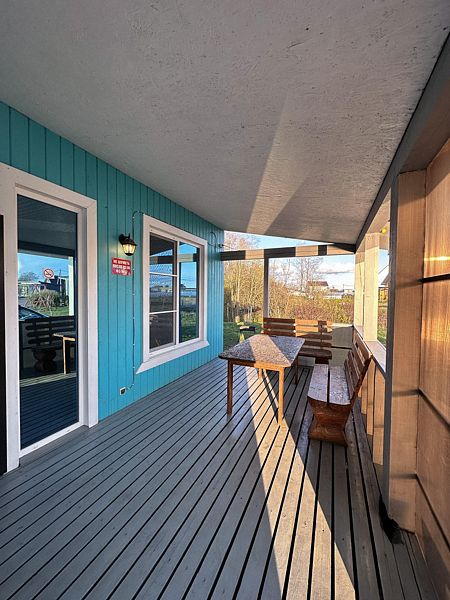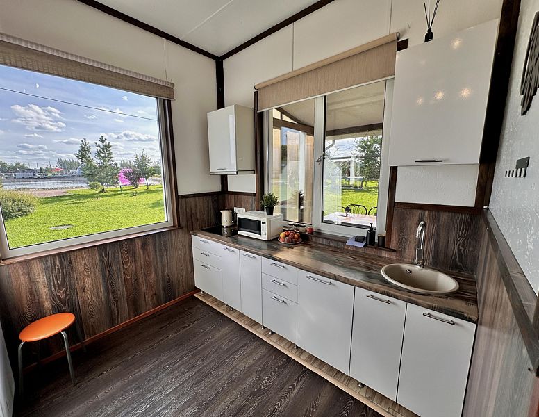 Уютный и теплый с панорамным окном и большой террасой с подвесным креслом. Дом находится всего в 10 метрах от берега. Прекрасно подойдет для семьи с детьми или для пары. Во всем доме теплые полы.
