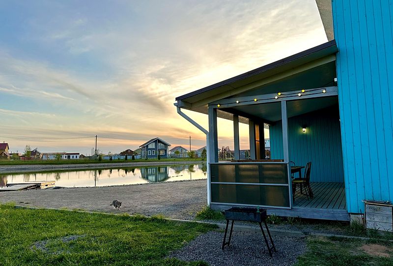 Теплый и уютный коттедж с панорамным видом, камином, большой террасой с подвесным креслом и красивым видом. Находится в 30 метрах от берега.