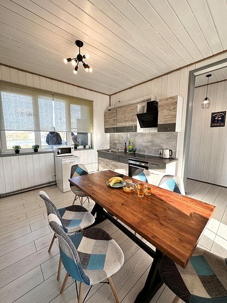 Современный дом с панорамным окном и видом на воду, очень теплый и уютный. Во всех помещениях теплые полы. Безлимитный WI-FI, прекрасный вариант для семьи с детьми или семейной пары. Дом находится прямо на берегу, 1 метр до воды.