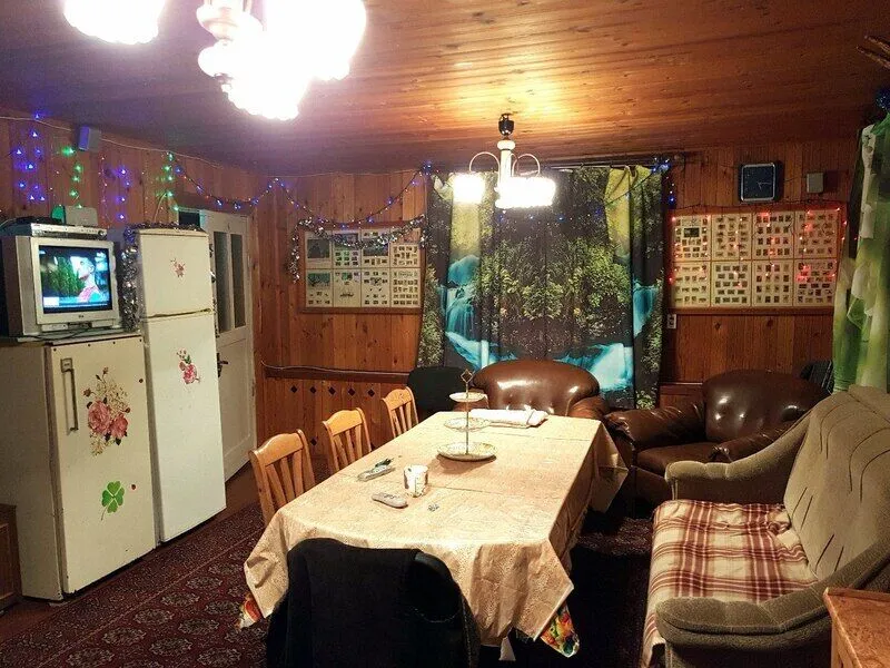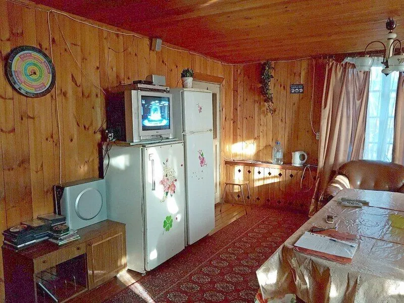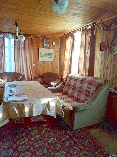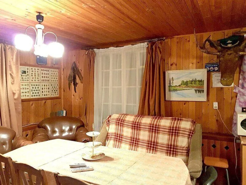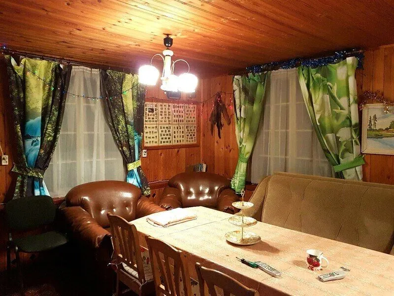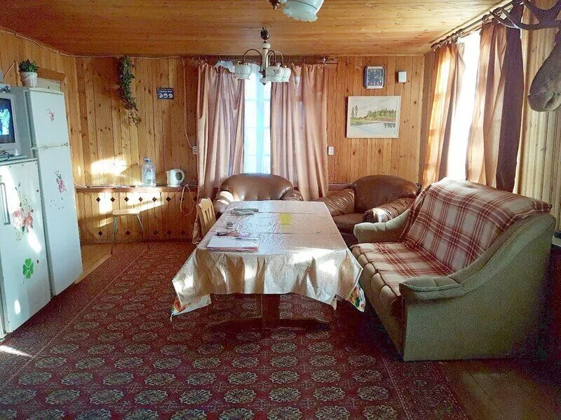 Трехэтажный коттедж на берегу реки Оредеж. Из окон виден лес и речка. Коттедж деревянный. На втором этаже располагаются 4 спальни 2-х и 3-х местные (в каждой комнате обогреватель, шкаф, столик), гостиная с камином (телевизор,дом. кинотеатр, караоке), туалет и душ, стиральная машинка. Гостиная оборудована мини-кухней, для самостоятельного приготовления пищи (мойка, холодильник 2 шт., электрочайник, микроволновая печь, посуда, электрическая плита с духовкой, кофеварка). На первом этаже находится просторная сауна ( парилка, комната отдыха с телевизором и ДВД-плеером, душевые, с/у), все комнаты в сауне с подогреваемыми полами. На третьем этаже просторный зал.