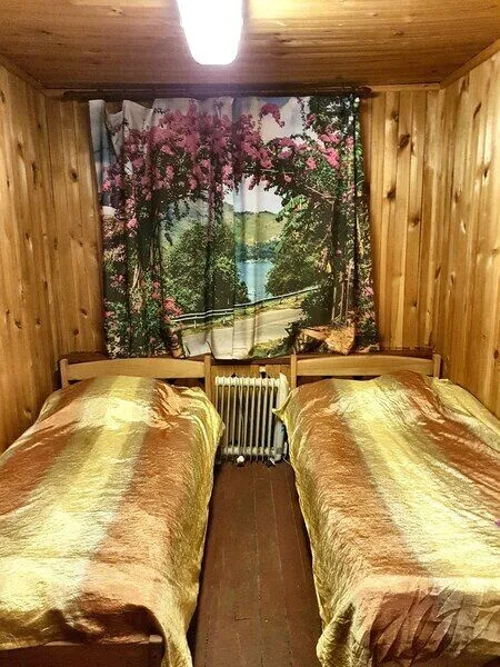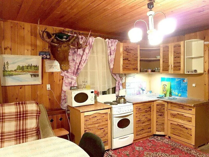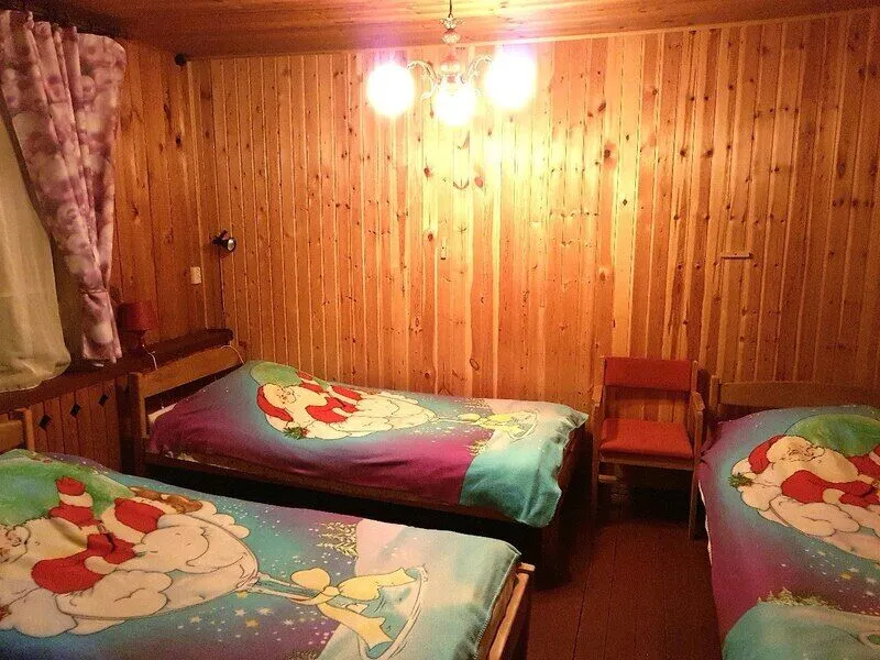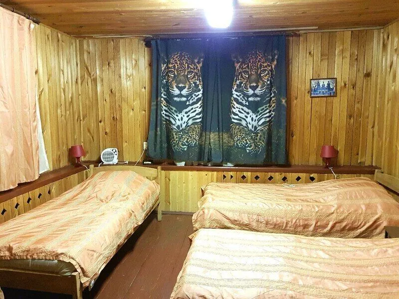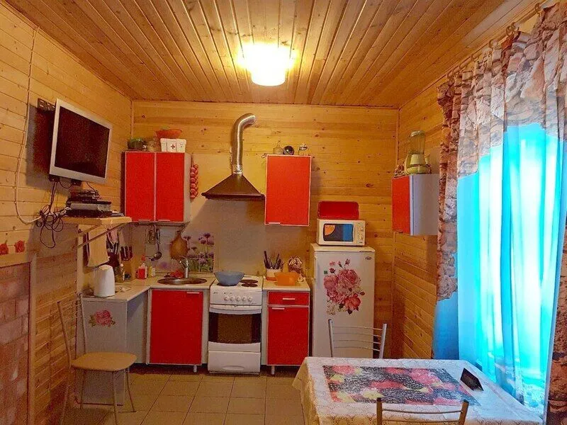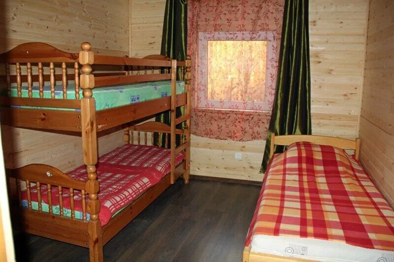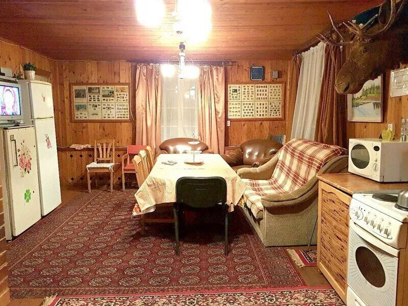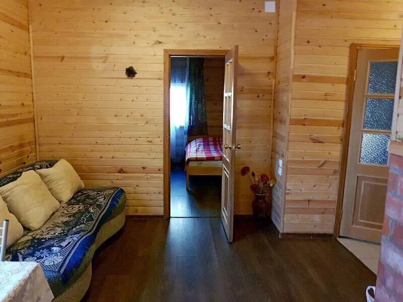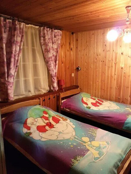 Оснащение: 2 комнаты (одна с двуспальной кроватью и одна с двухъярусной кроватью и односпальной кроватью.), с/у с душевой кабиной, сауна, гостиная-кухня. Полностью оборудованная кухня для самостоятельного приготовления пищи, плазменный телевизор, караоке, камин, триколор, стиральная машинка, подогреваемые полы, микроволновая печь.