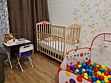 Для детей: кроватка с ортопедическим матрасом, люлька, стул для кормления, игровой уголок, сухой бассейн с шарами, стол и стул для занятий, игрушки.