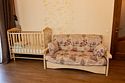 - 1 спальня — двуспальная кровать, детская кроватка;