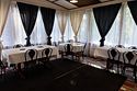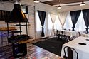 Закрытая терраса с панорамными окнами оформлена в стиле банкетного зала и оборудована зоной барбекю для приготовления шашлыка.
