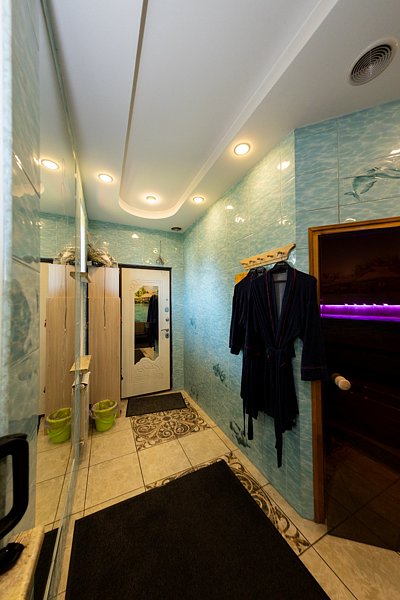 Банный комплекс находится в самом доме, состоит из жаркой русской бани на дровах. Здесь вы сможете от души попариться берёзовым или дубовым веником, окатиться холодной водой из обливного ведра, а после отдыхать и пить ароматный чай под приятную расслабляющую музыку.