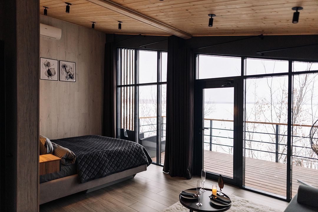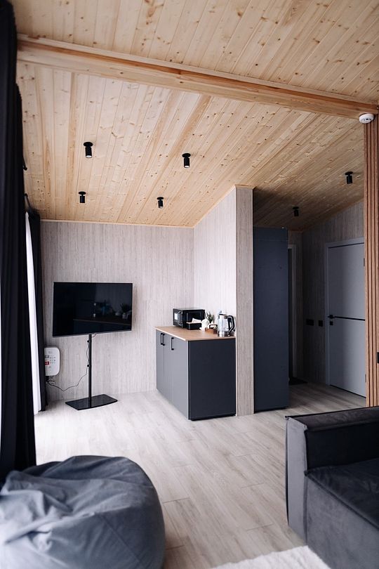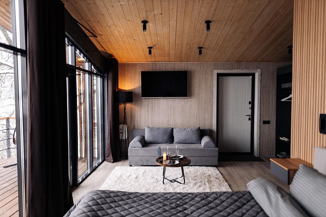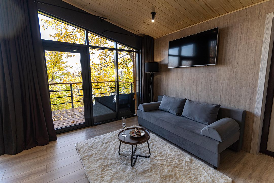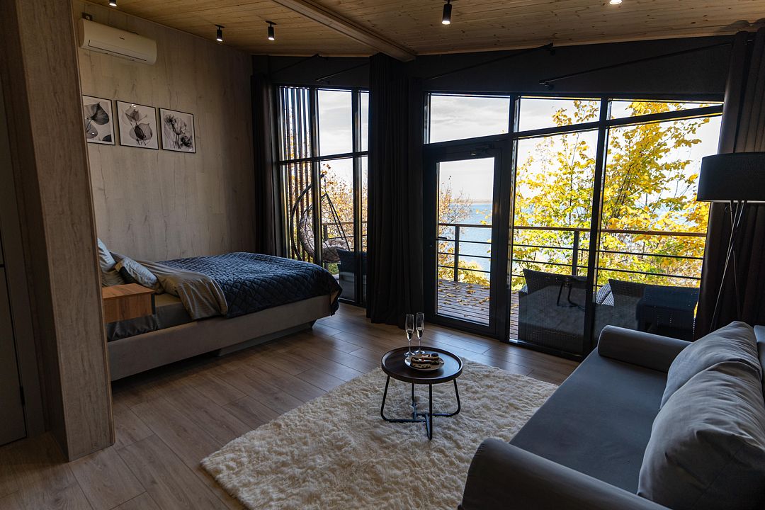 Территория клуба включает 10 уникальных авторских домов, каждый из которых имеет свой стиль и особенности. Все домики оснащены комфортной мебелью, санузлом с душевой кабиной, бесплатным Wi-Fi и уютными террасами с видом на реку.