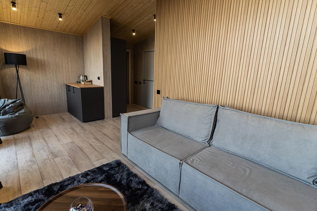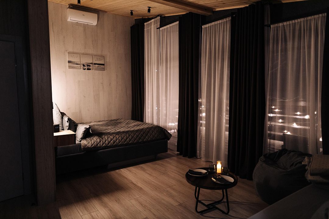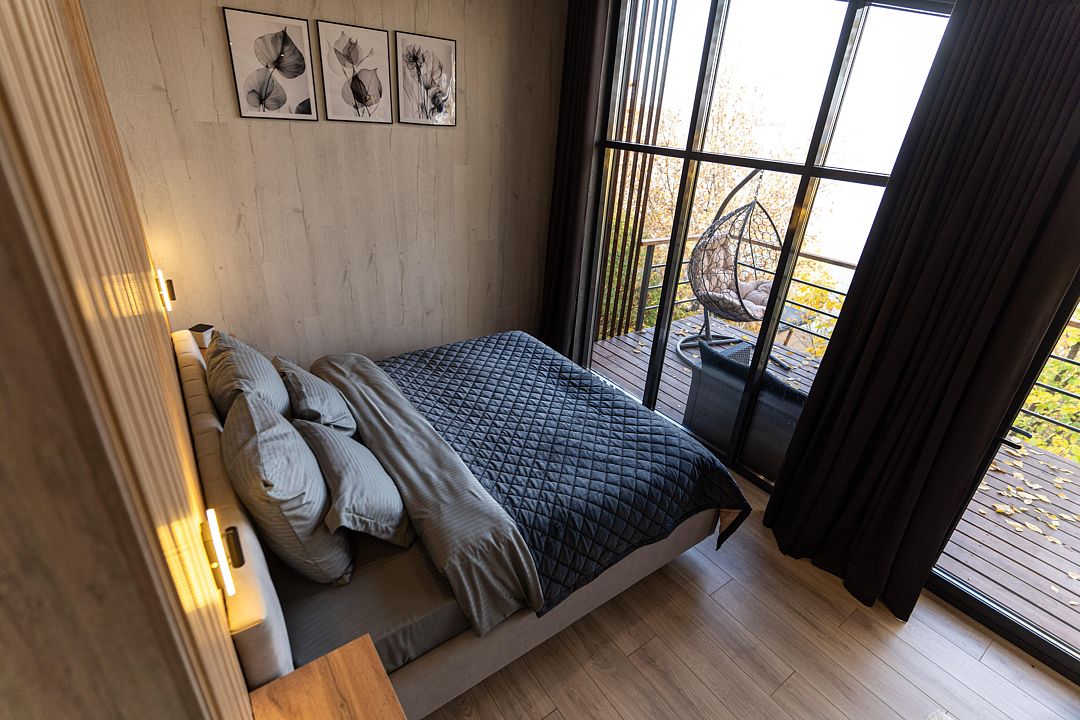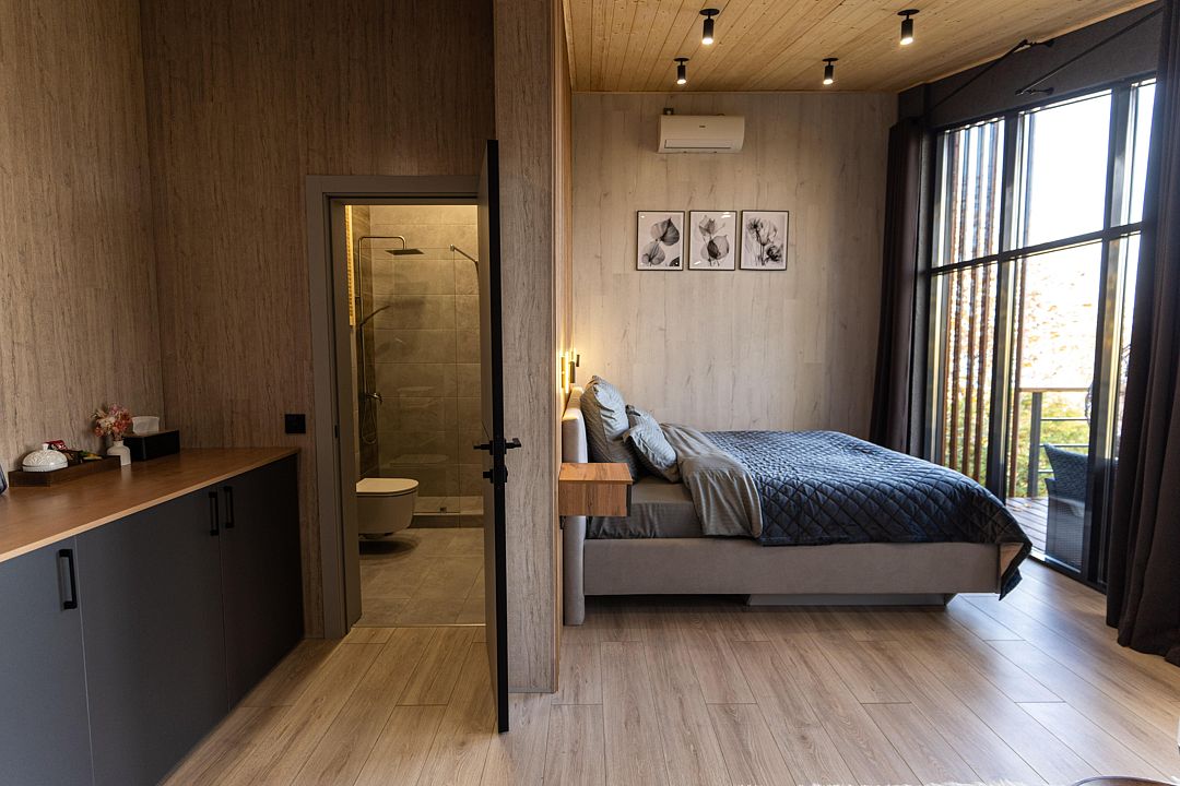 Территория клуба включает 10 уникальных авторских домов, каждый из которых имеет свой стиль и особенности. Все домики оснащены комфортной мебелью, санузлом с душевой кабиной, бесплатным Wi-Fi и уютными террасами с видом на реку.