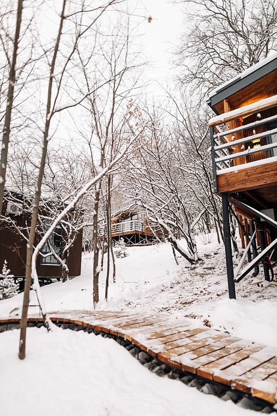 Читать полностьюВ глэмпинге можно не только наслаждаться природой, но и полностью расслабиться в банях с огромными панорамными окнами. Представьте: жаркий пар, аромат дерева, уединение, и за стеклом – зимний лес, река, природа, которой можно любоваться, оставаясь в тепле и уюте.