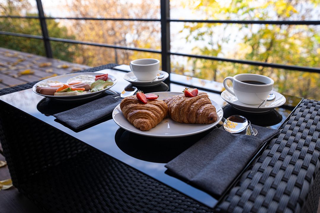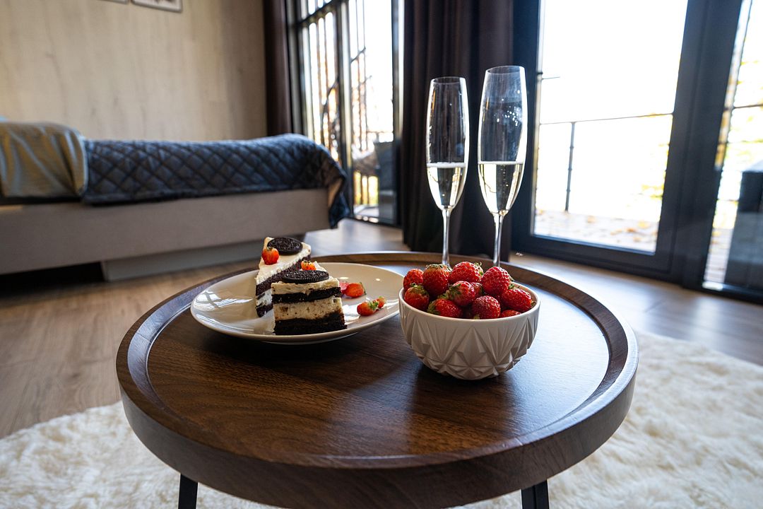 - насладиться завтраком с видом на природу — его доставят прямо к вашему домику;