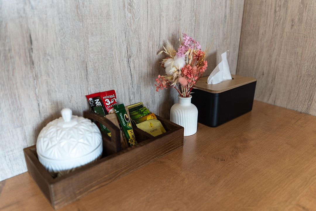 - чайник и набор для приготовления чая/кофе.