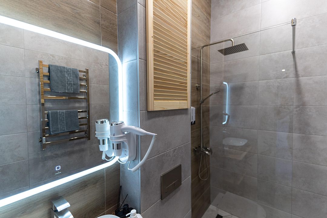 - принадлежности для душа: халаты, полотенца, тапочки, кондиционер, гель для душа, бальзам, шампунь, мыло, зубной набор и другое;