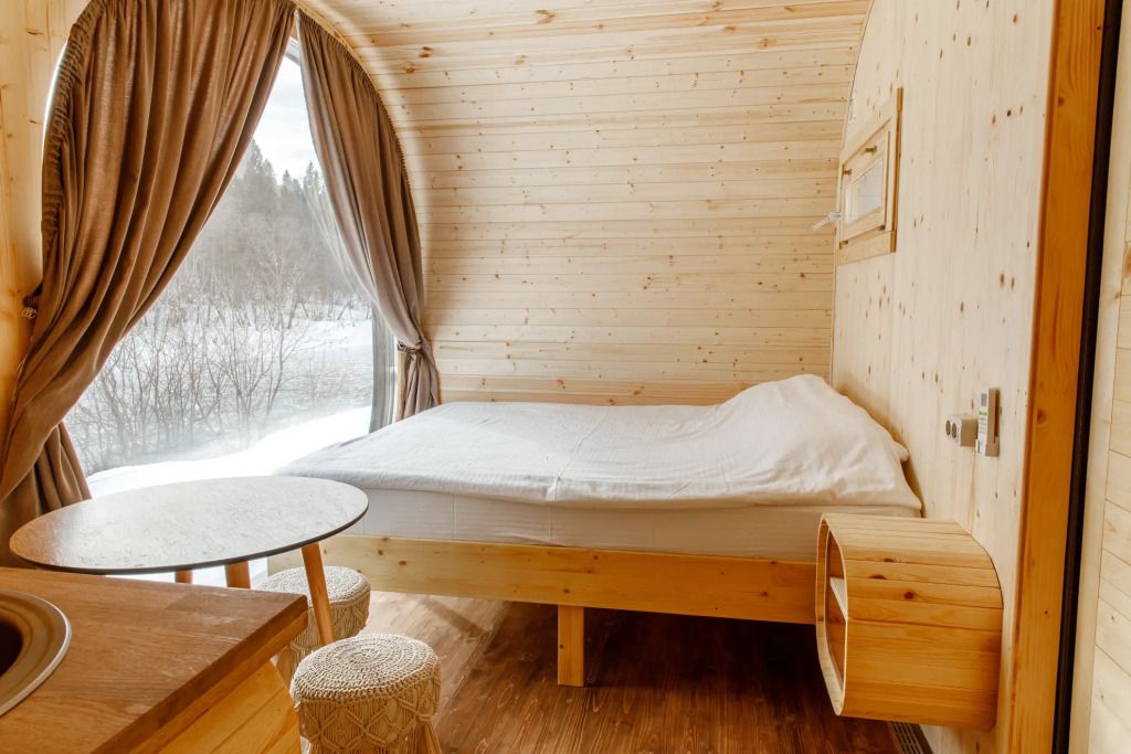В домике уютно, тепло, есть все необходимое. Очень классное окно, сделали красивые фотки и просто любовались видом на реку.