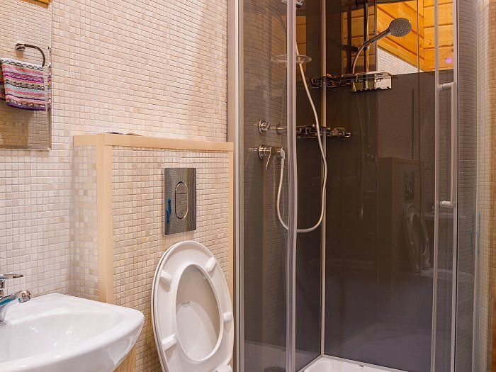 - с ванной или душевой кабиной