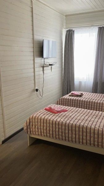 Номер из категории бюджетный . Совсем небольшой 7.5 м.кв. В номере есть две односпальные кровати , шкафчик и тумбочка. душ и санузел на этаже. Также есть кухня общего пользования с необходимым набором посуды.