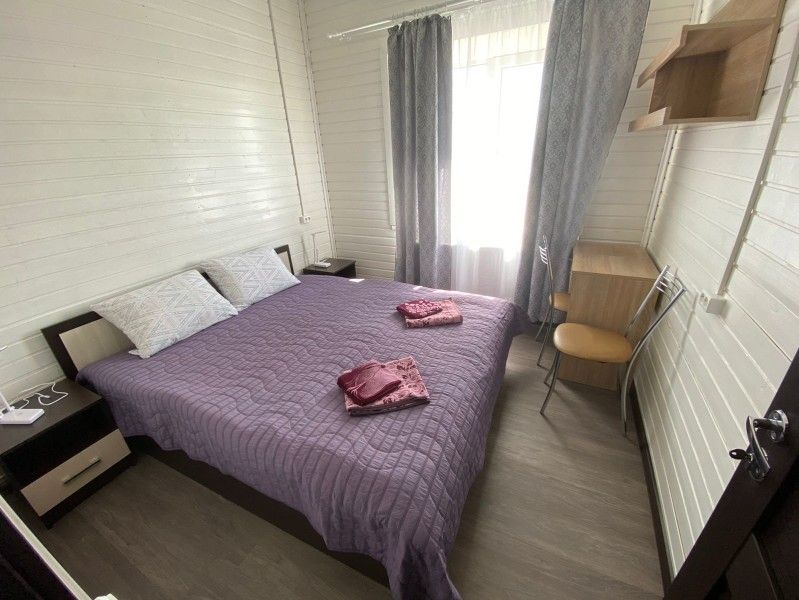 Уютный номер для двоих , площадь 24м. кв. В номере есть кровать размером 1.6 м. , чайник , мини холодильник, телевизор , два кресла и журнальный столик , душ и санузел, шторы блэкаут.