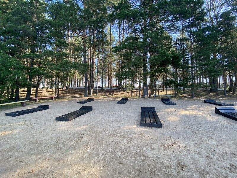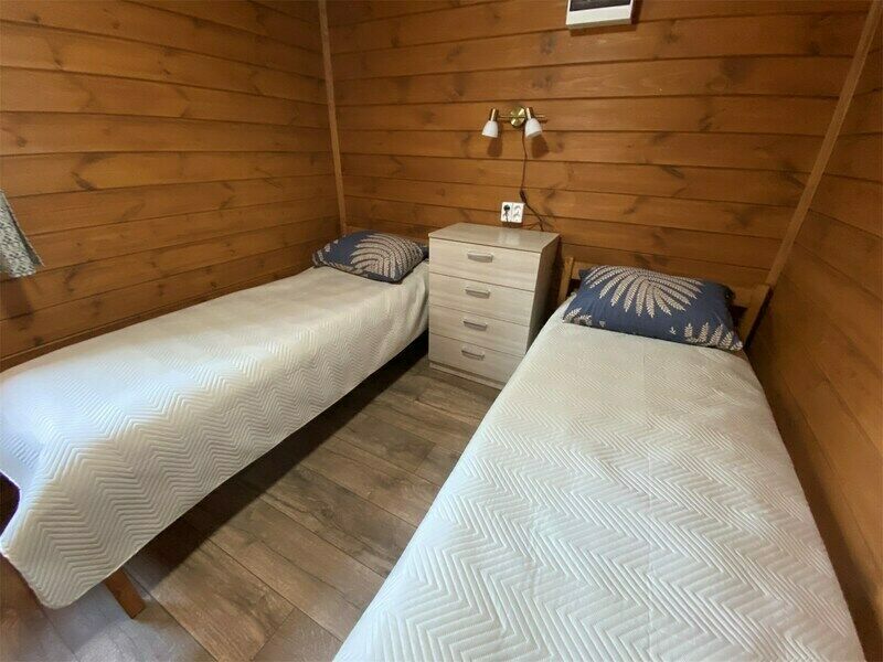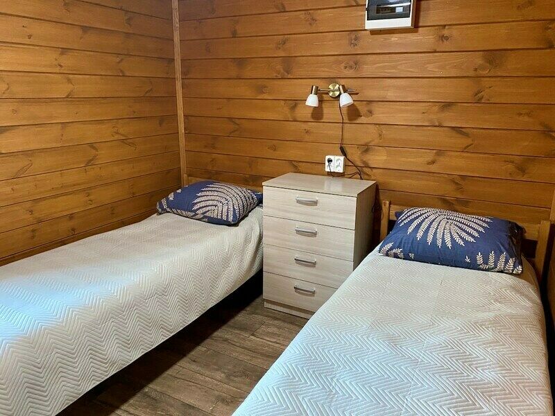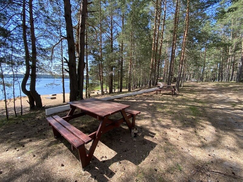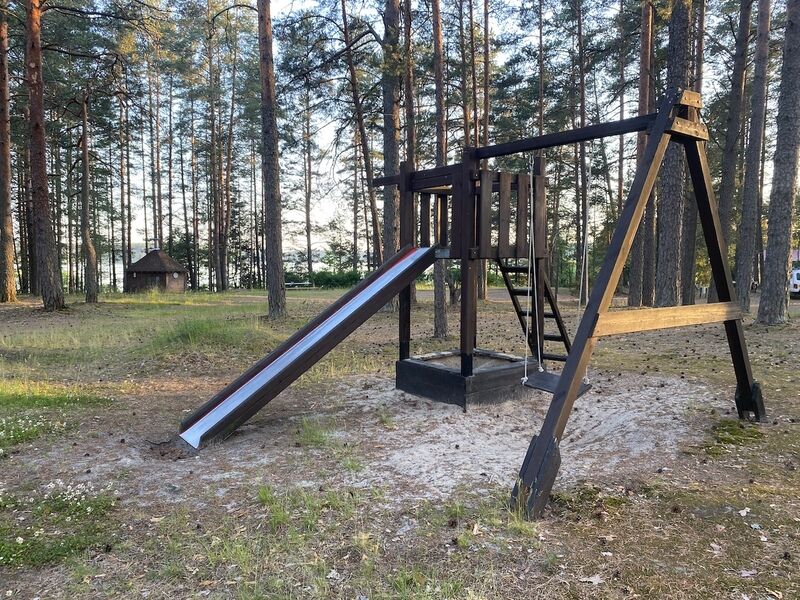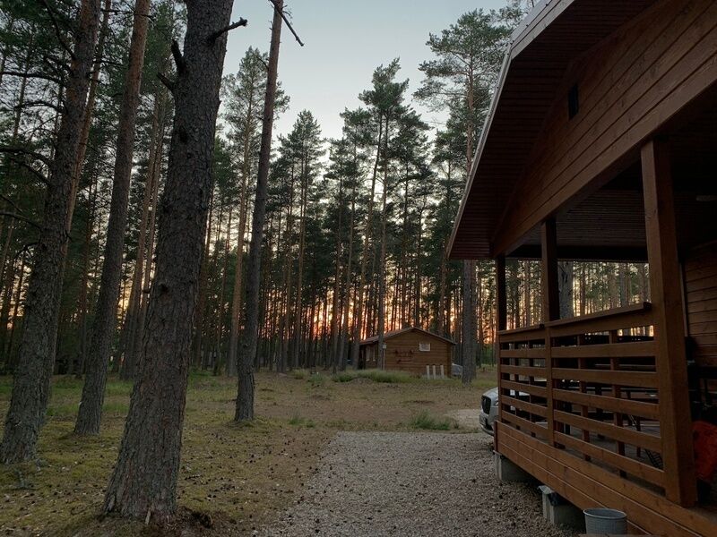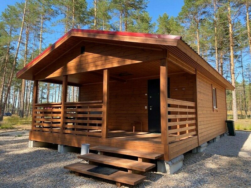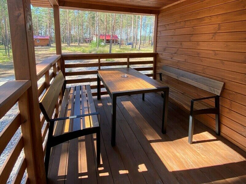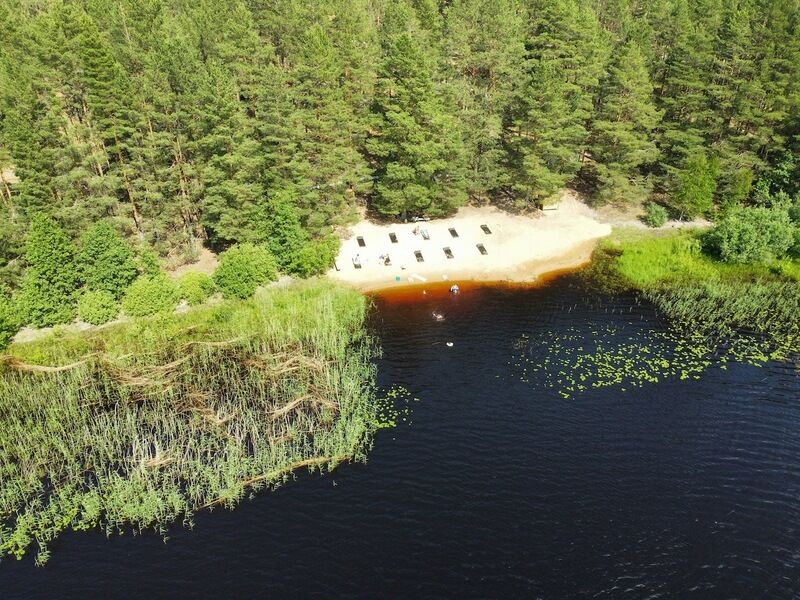 Здесь есть несколько уютных и полностью оборудованных коттеджей. Они стоят в сосновом лесу на берегу красивого озера со чистой водой и песчаным дном. Рядом оборудован понтон для лодок и рыбной ловли. Автомобили можно оставить на бесплатной парковке, которая находится поблизости от коттеджей. На базе отдыха есть волейбольная площадка, настольный теннис, бадминтон, дартс и велосипеды в аренду. На берегу есть раздевалки и лежаки для отдыха.