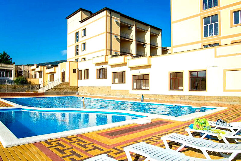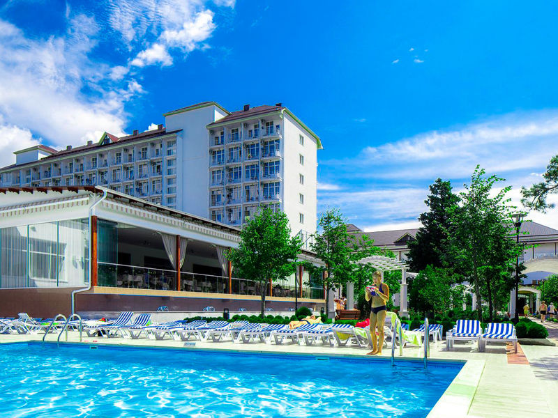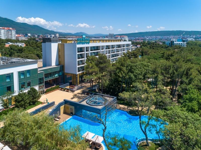Открытый подогреваемый бассейн (сезонный) 300 м², крытый бассейн в spa центре (круглогодичный) 330 м²
