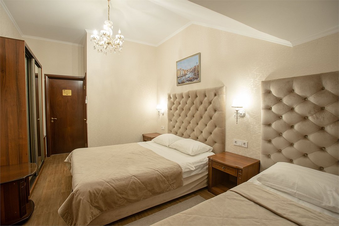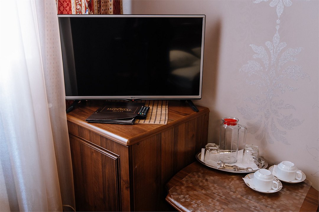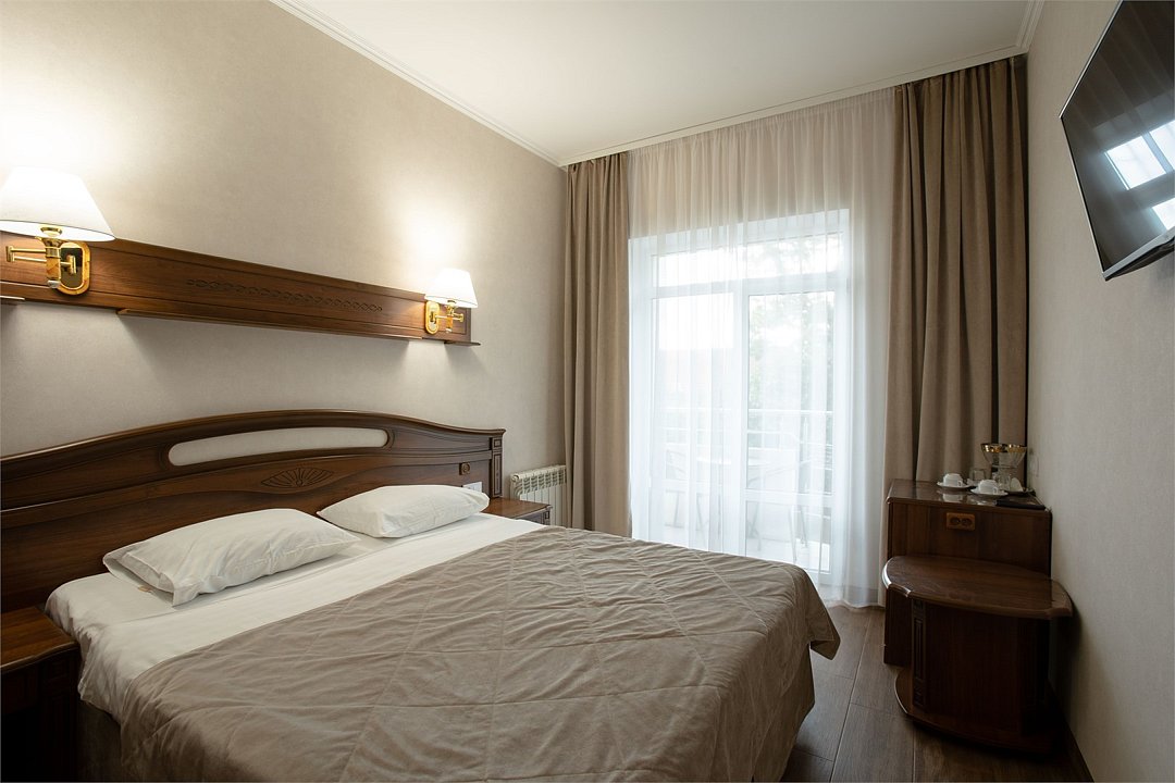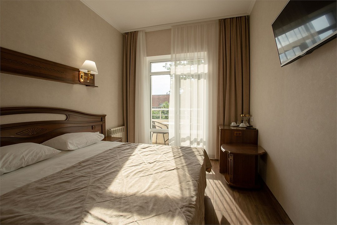Короткий отпуск с друзьями🔥🔥🔥Приятное впечатление оставил отель. Приехали уже поздно, забронировать не успели. В Яндексе нашли несколько предложений, подъехали к первому отелю - предложили номер без окон.... Позвонили в Империал, нам рассказали как подъехать, парковка около отеля. Нас ждали. Быстрое оформление, приятная встреча. Останавливались на одну ночь, двое взрослых+ ребенок 12 лет. Трёхместный стандарт. Компактный, уютный номер на 3 этаже, чистота, постель белоснежная, полотенца белоснежные, холодильник, чайник, посуда, фен, сейф, дополнительные одеяла, удобные матрасы, кондиционер, телевизор, в ванной душевые принадлежности, тапочки... Балкон - столик и стулья, вид на горы. Вообще в номере все со вкусом, мебель современная, все продумано . Всё с душой. За эту бюджетную цену - просто сказка. Для одной ночи нам все было отлично. Если отдыхать дольше то номер возможно кому-то будет тесноват. Мы остались очень довольны. На первом этаже свое кафе, можно заказать в номер. Кормят вкусно и с душой. К морю минут пятнадцать ....