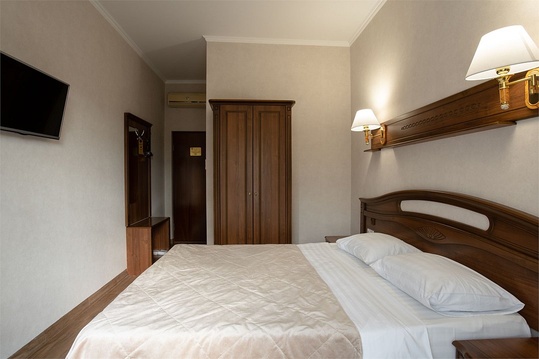 Комфортабельный номер площадью 18 кв.м. с одной двуспальной кроватью или двумя односпальными кроватями и балконом, расположенный на 2,3 этажах. Для комфортного пребывания номер оборудован: телевизором , индивидуальной системой климат-контроля, сейфом, высокоскоростным проводным интернетом и бесплатным Wi-Fi, так же для Вашего удобства имеются принадлежностями для приготовления кофе и чая, холодильник, необходимый набор посуды. Ванная комната укомплектована набором полотенец, косметическими принадлежностями, феном и тапочками.С балкона каждого номера открывается вид на панораму города и Маркотхский хребет.В номерах категорически запрещается курить!Услуги и удобства