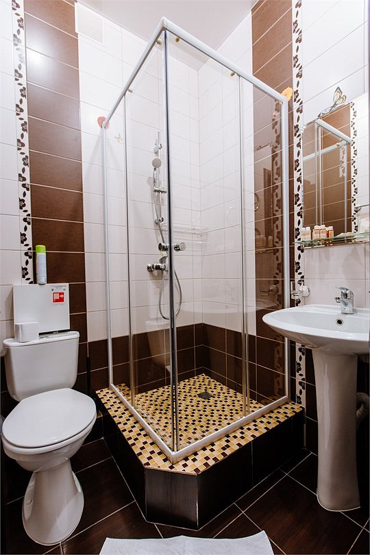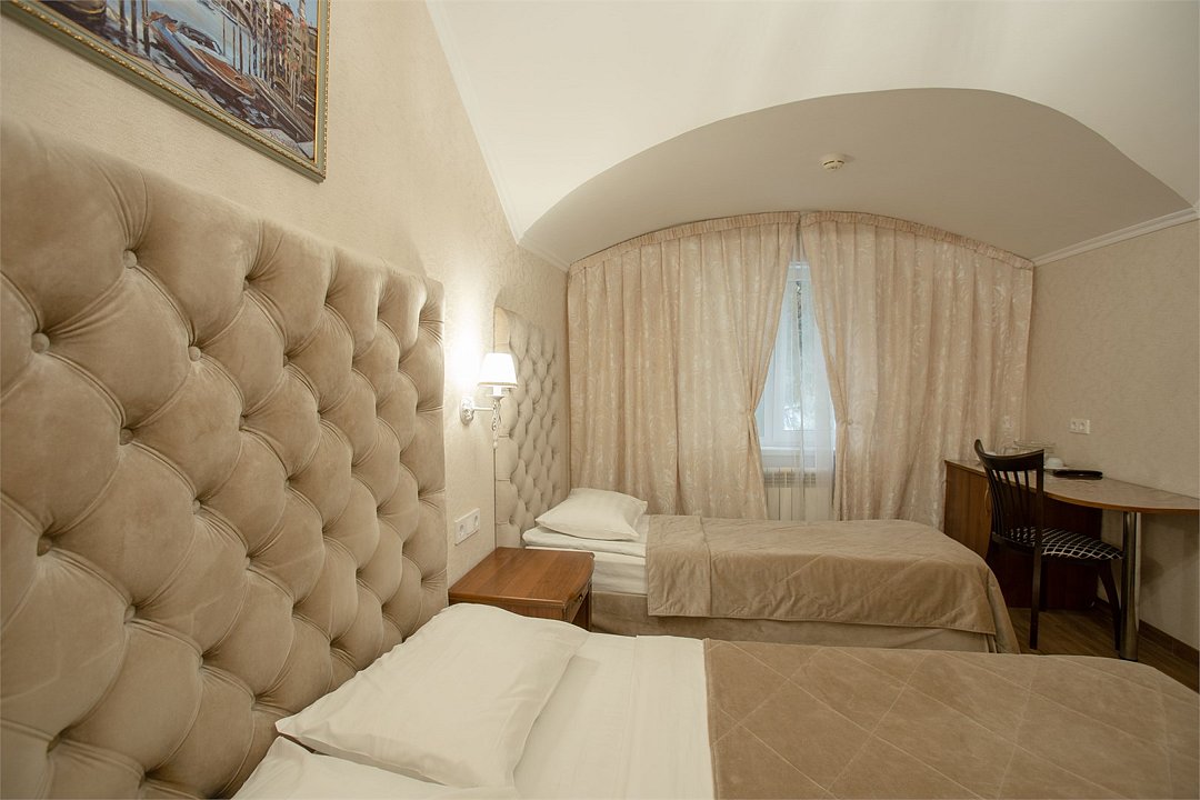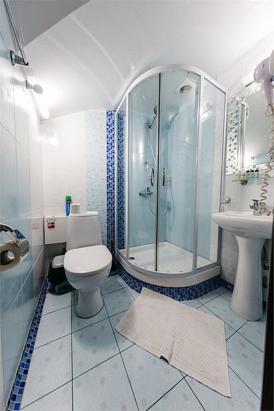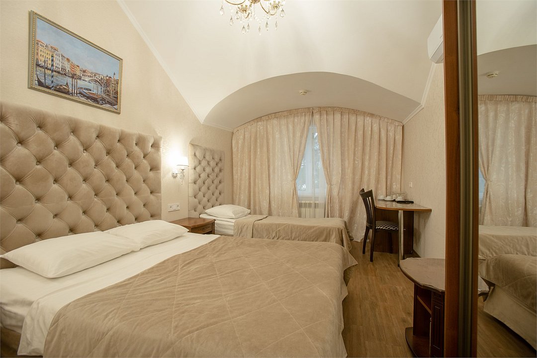 Трехместный номер "Комфорт" площадью 20 кв.м. с одной двуспальной кроватью и одной односпальной или тремя односпальными кроватями без балкона, расположен на 4 мансардном этаже. Для комфортного пребывания номер оборудован: телевизором , индивидуальной системой климат-контроля, сейфом, высокоскоростным проводным интернетом и бесплатным Wi-Fi, так же для Вашего удобства имеются принадлежностями для приготовления кофе и чая, холодильник, необходимый набор посуды. Ванная комната укомплектована набором полотенец, косметическими принадлежностями, феном и тапочками.В номерах категорически запрещается курить!Услуги и удобства