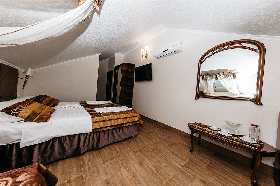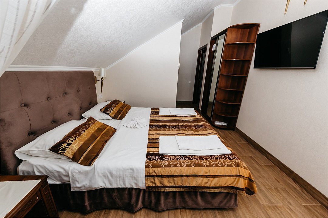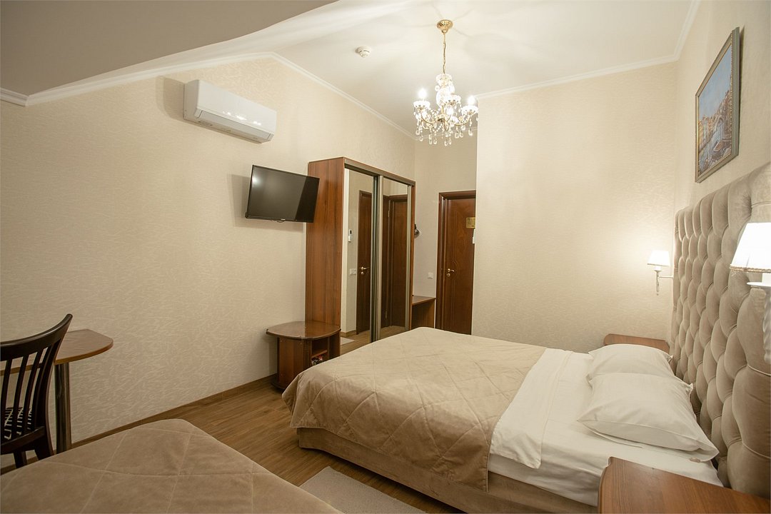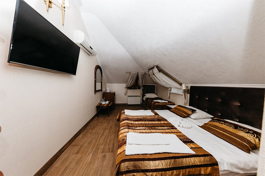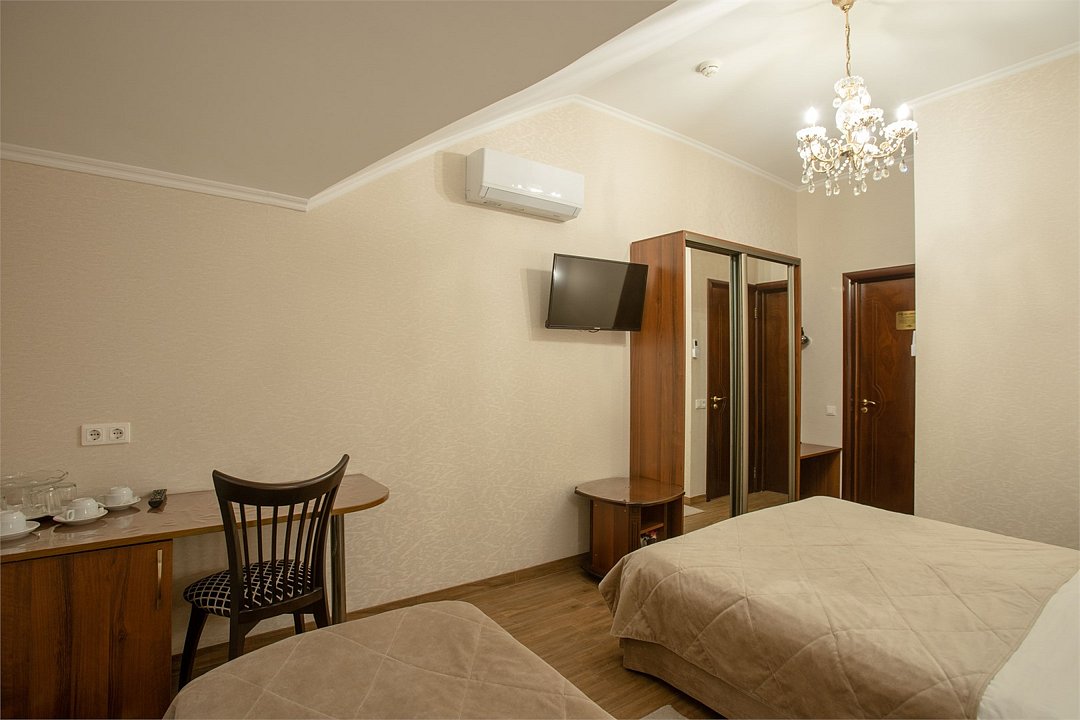 телевизор, спутниковое телевидение, Wi-Fi, интернет, холодильник, кондиционер, фен, душевая кабина, гигиенические средства, двуспальная кровать, односпальная кровать, ортопедический матрас, шкаф для одежды, вешалки, зеркало, набор посуды, информационная карта, меню, сейф, чайник, раковина, питьевая вода, душ, три односпальные кровати, стаканы, столовые приборы, стиральная машина и сушилка, туалетные средства, сплит-система, цифровое тв, телевизор с плоским экраном, гостиничная парфюмерия, мансардные окна, номер для некурящих, можно с питомцамиВ гостиничном номере