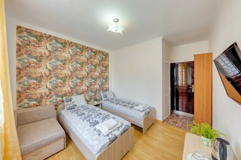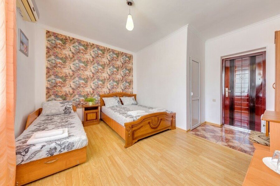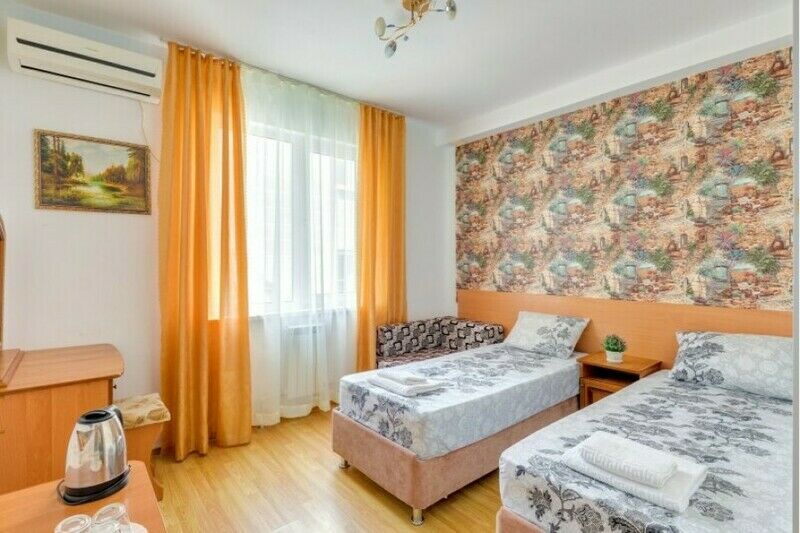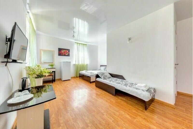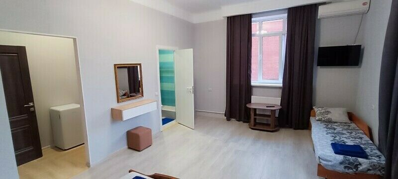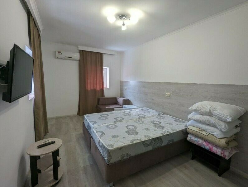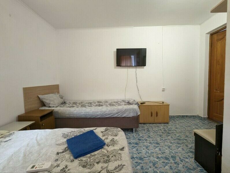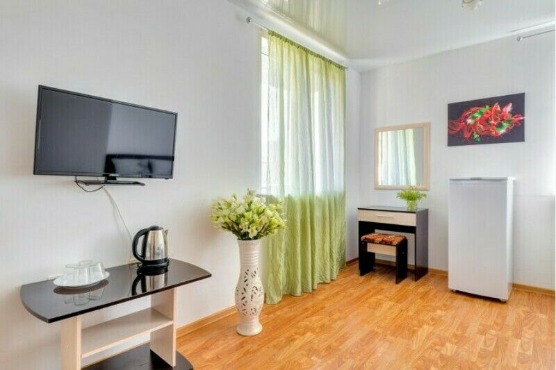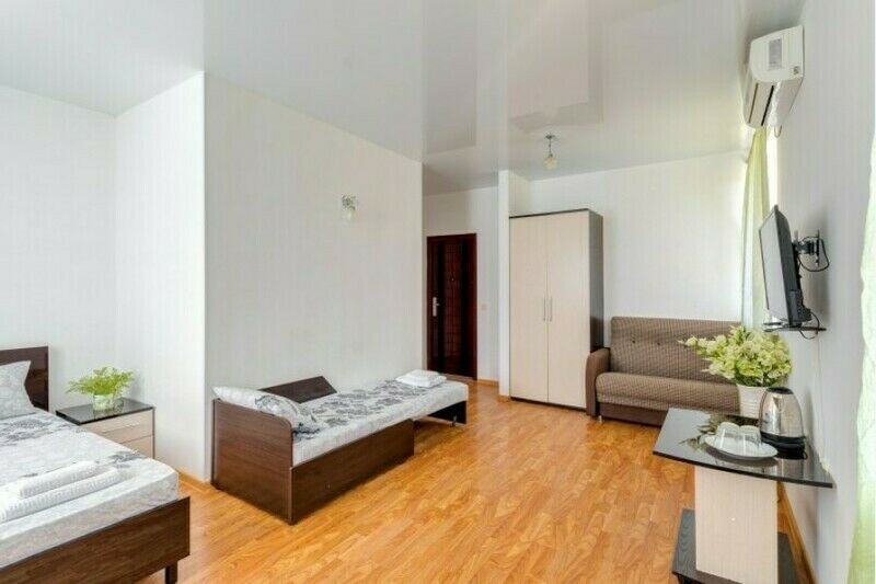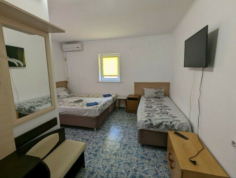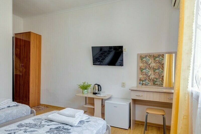 Вас ждут две удобные кровати и диван-тахта для крепкого сна. Для тех, кто любит проводить время в номере, установлен телевизор и косметический столик с зеркалом для подготовки к свиданиям с морем.