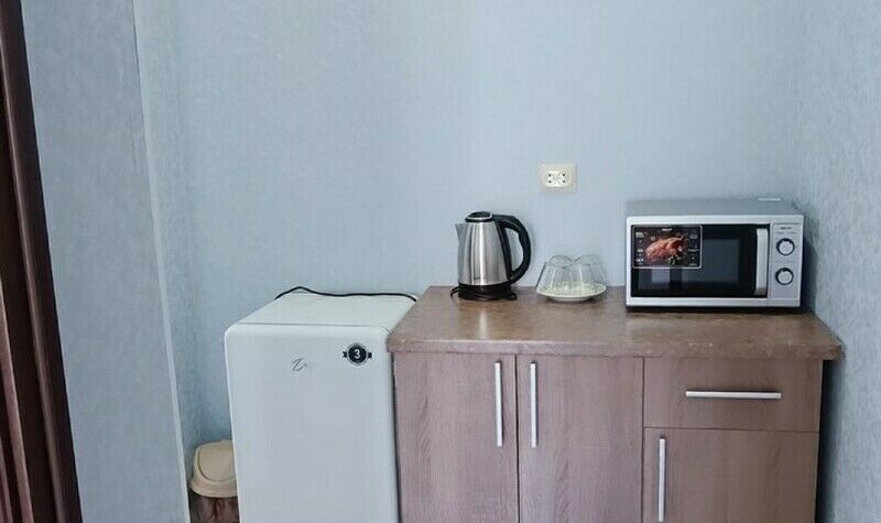 Холодильник и шкаф помогут сохранить порядок в номере и свежесть продуктов. Окно в номере добавит ярких красок отдыху. Также комната оборудована современным санузлом с душем.