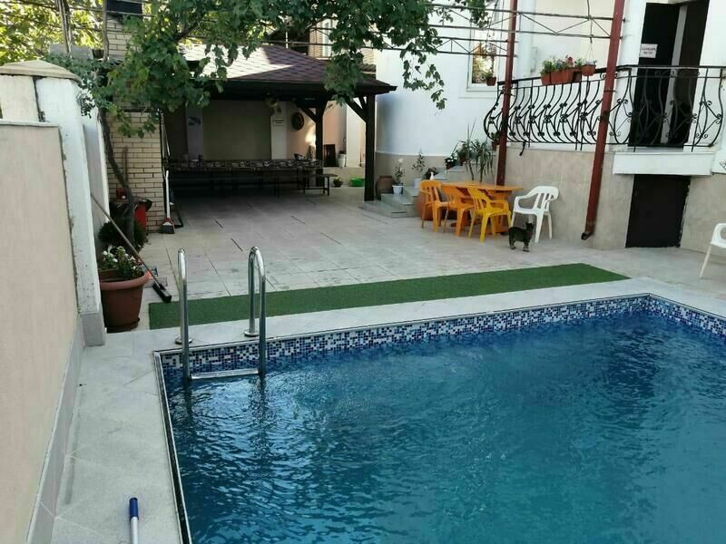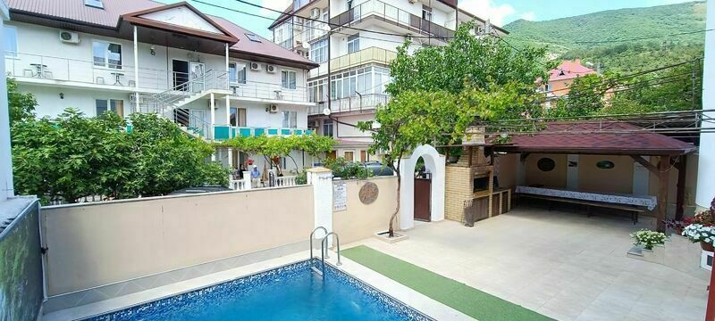 В шаговой доступности находятся магазины «Магнит» и «Красное-Белое», парикмахерская, детская комната и поликлиника. До центра города и пляжа пешим ходом можно дойти за 15 минут и за 5 минут — на такси. На территории гостевого дома есть барбекю и все необходимые принадлежности для жарки. Вечером вы можете отдохнуть, выпить, искупаться в бассейне и посмотреть телевизор. В отеле есть также столовая, где можно заказать завтраки, обеды, ужины или комплексное питание по невысокой цене.