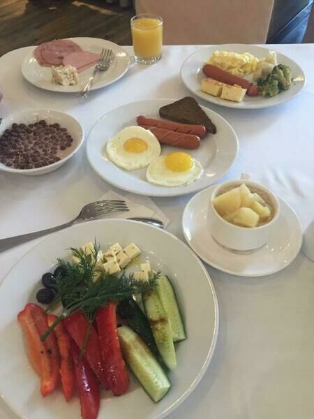 Читать полностьюВ столовой при гостевом доме предоставляются завтраки по цене 400 ₽ с человека, а также комплексное питание (завтрак, обед, ужин) — 1200 ₽ с человека.