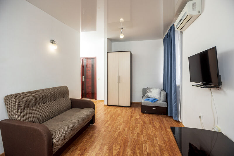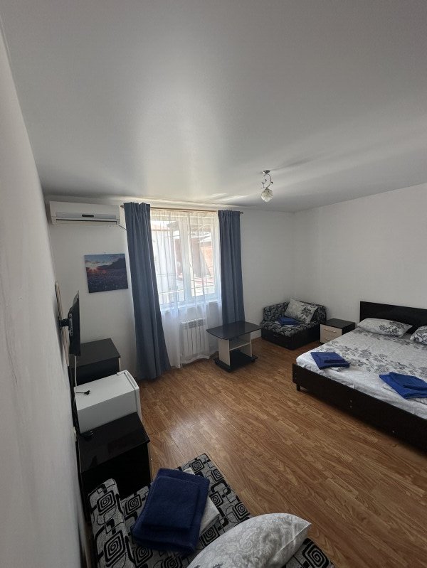 Просторный однокомнатный номер, где каждый найдет место для себя. Для вашего удобства мы подготовили двуспальную кровать, раскладной диван и диван-тахту.