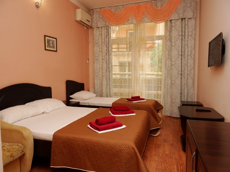 Номерной фонд представлен номерами категорий Стандарт и Комфорт, рассчитанные от 2 до 5 человек. Каждый номер ярко оформлен, располагает всем необходимым для комфортного времяпрепровождения. В распоряжении гостей телевизор с плоским экраном, холодильник, кондиционер, интернет Wi-Fi, шкаф и удобная кровать. Ванная комната оснащена душем и всеми необходимыми туалетно-косметическими принадлежностями.