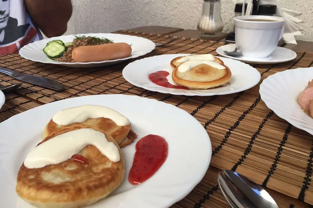 Путешествие по работеГостевой домОстанавливался по работе. Близко от аэропорта, далековато от центра, 10 минут до моря. Хороший подъезд с 2 сторон. Добродушная, приветливая хозяйка, принимают безналичный расчет. Есть собственный каркасный бассейн и небольшое кафе. Номера чистые, просторные. В целом все не плохо, если ехать отдыхать, до дорога на море очень быстрая по большой, пустынной аллее не более 5-7 минут средним шагом, рядом есть продуктовый магазин. Из замечаний у меня за 4 ночи ни разу не убрались в номере, как заполнил мусорное ведро в первый день, так оно и простояло до отъезда, это же касается всех ванных принадлежностей (мыло, шампунь, бумага). Все закончилось. Завтрак крайне скромный, но каждый день менялся. Если бы подтянули кухню, то было бы совсем все здорово. Дневные бизнес ланчи по 350 руб. это даже для Москвы не мало. Были отзывы что после 23 нельзя шуметь, у меня как раз окна выходили на кухню и шумная компания просидела почти до утра.