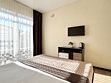 Уютный, светлый номер с балконом и видом на территорию отеля. Номер оснащен: двуспальная кровать, прикроватные тумбочки, прикроватные бра, туалетный столик, шкаф, вешалка, зеркало, электрический чайник, мини-холодильник, телевизор, кондиционер, шторы блэк-аут. Ванная комната: душ, зеркало, фен, комплект полотенец, тапочки, набор гостиничной косметики. Небольшой балкон, сушилка для белья.