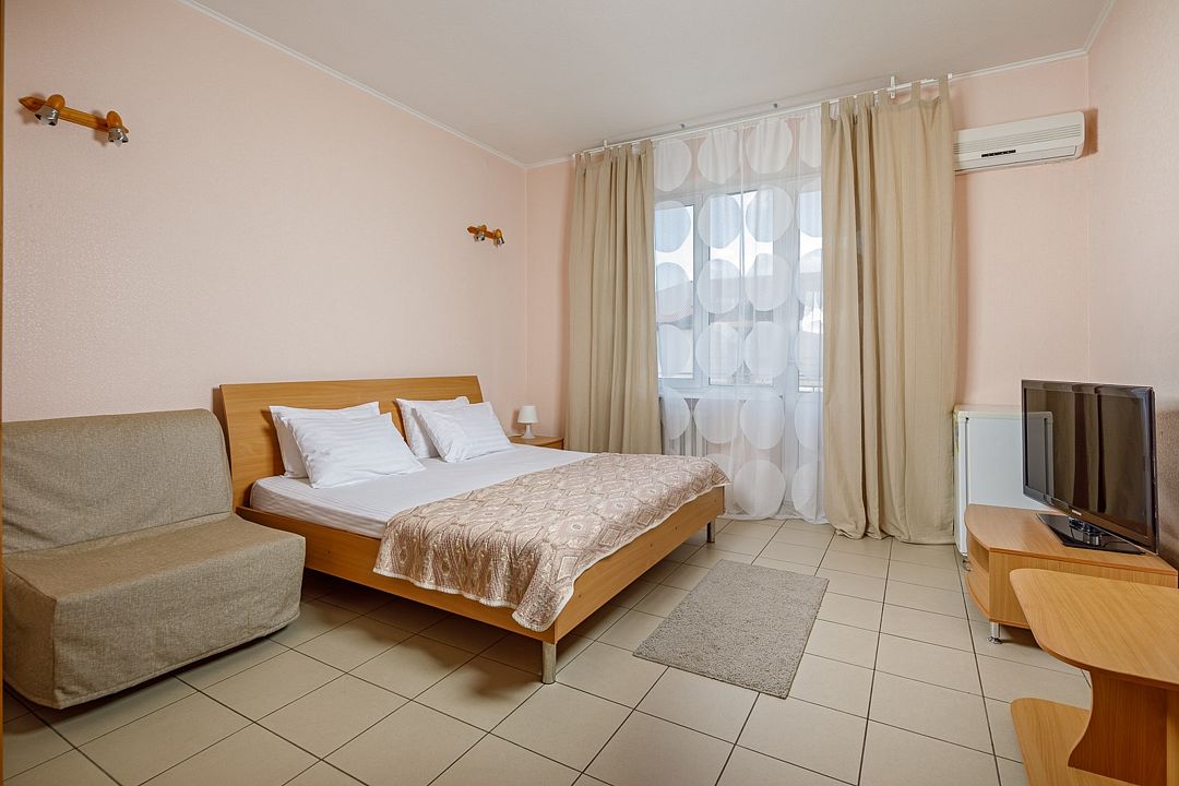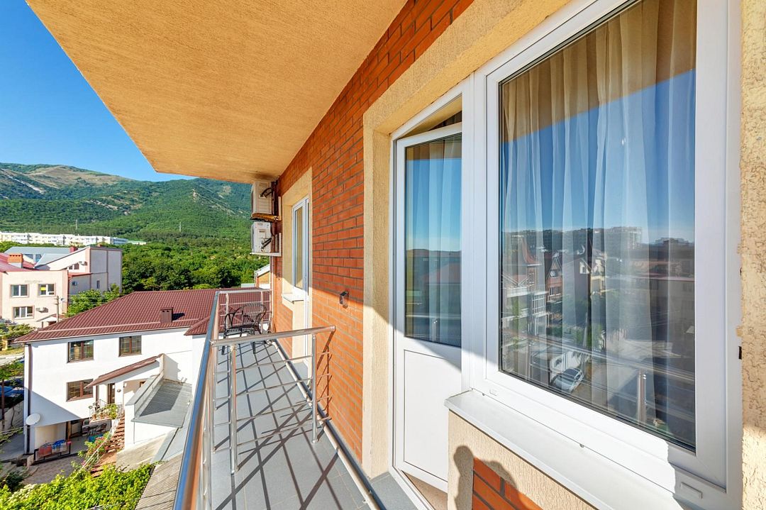 Современный однокомнатный номер с балконом и потрясающим видом на море и горы , подойдет для одно-, двух- или трехместного размещения. Здесь будет комфортно как семейной паре с ребенком, так и гостям посетившим город по рабочим делам. Площадь номеров этой категории 18 кв.м. Удобные кровати с ортопедическими матрацами позволят вам комфортно выспаться, а как говорится хороший сон – залог успеха. В каждом номере система кондиционирования; ванная комната с душем и туалетом; цифровое ТВ, доступ к интернету, холодильник, набор полотенец и мыльных принадлежностей.Услуги и удобства