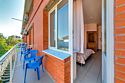 Современный однокомнатный номер c балконом подойдет для четырехместного размещения. Здесь будет комфортно как семейной паре с детьми, так и другой категории гостей. В номере большая двуспальная кровать king-size шириной 2 метра и два удобных кресла-кровати. Площадь номеров этой категории 24 кв.м. Удобные кровати с ортопедическими матрацами позволят вам комфортно выспаться, а как говорится хороший сон – залог успеха. В каждом номере система кондиционирования; ванная комната с душем и туалетом; цифровое ТВ, доступ к интернету, холодильник, набор полотенец и мыльных принадлежностей.Услуги и удобства