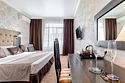 В номере есть все необходимое для вашего комфорта: две прикроватные тумбочки, большой шкаф, плазменный телевизор, мини-холодильник и чайная станция. В просторной ванной комнате вы найдете комплект белых полотенец и брендовую косметику.