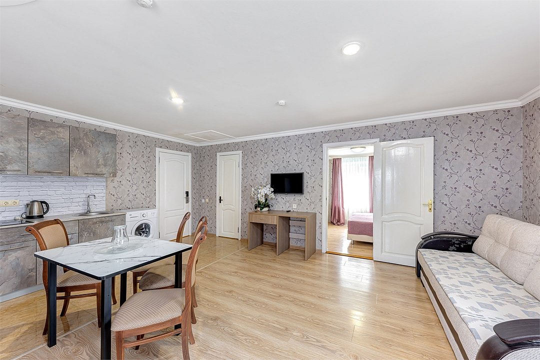 Просторный уютный номер для семьи из 3х-4х человек. В номере есть все необходимое для комфортного проживания. Отдельный вход с улицы, уличная мебель, рядом бассейн.Услуги и удобства