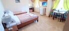Просторный семейный номер состоит из одной комнаты, санузла и балкона с видом на бассейн. Номер оснащен двуспальной кроватью с ортопедическим матрасом и двуспальным диваном, тумбочками, шкафом для одежды, туалетным столиком с зеркалом, холодильником, кондиционером, телевизором с плоским экраном, чайником. Санузел совмещенный с душевой кабиной. Номер укомплектован постельным бельем, полотенцами, тапочками, мыльными принадлежностями.Услуги и удобства